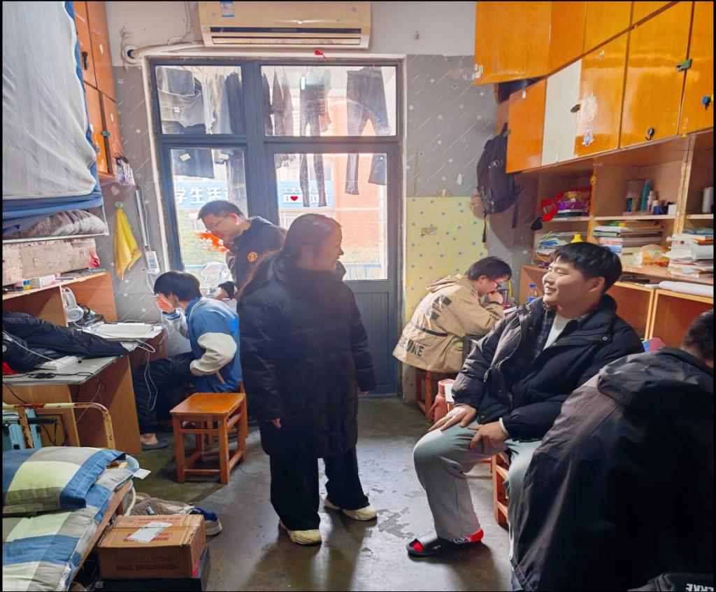 为进一步强化学生消防安全意识,排查宿舍安全隐患,筑牢校园安全“防火墙”,12月17日下午,suncitygroup太阳集团2025级辅导员董春辉、毕苗深入学生宿舍,开展消防安全专项走访排查工作。