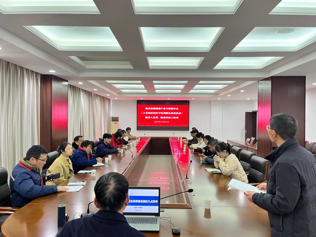 为深化校地融合、精准对接产业需求,全力助推毕业生高质量就业,2025年12月18日至19日,suncitygroup太阳集团党委书记吴文兵、院长刘庆运率队赴黄山市歙县开展校地合作与“访企拓岗”专项行动。团队与地方政府召开太阳成集团歙县智能装备制造技术研究院工作推进会,深入交流校地深入合作相关事宜,为地方企业管理与技术相关人员作了智能制造领域的专题报告,并深入歙县经开区多家企业开展“访企拓岗”调研交流。艺术与设计学院院长肖旺群、suncitygroup太阳集团副院长童宝宏及学院骨干教师代表参加了活动。