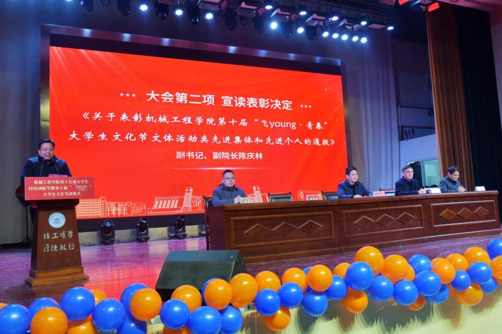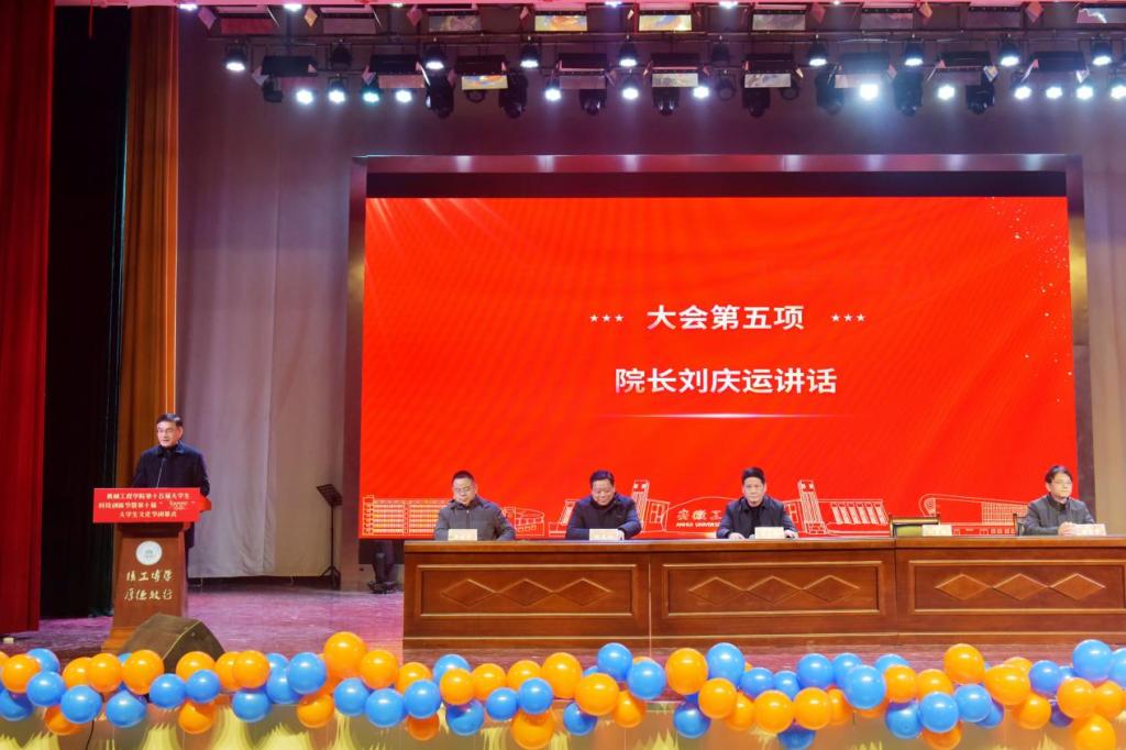 12月24日,suncitygroup太阳集团第十五届大学生科技创新节暨第十届“飞young·青春”大学生文化节闭幕式在秀山校区大学生活动中心隆重举行。院党委书记吴文兵、院长刘庆运、院党委副书记、副院长陈庆林、副院长饶思贤、童宝宏出席开幕式,各系主任、班主任、全体辅导员、各年级学生代表共同见证这一荣耀时刻。闭幕式由学院团委书记王丹丹老师主持。