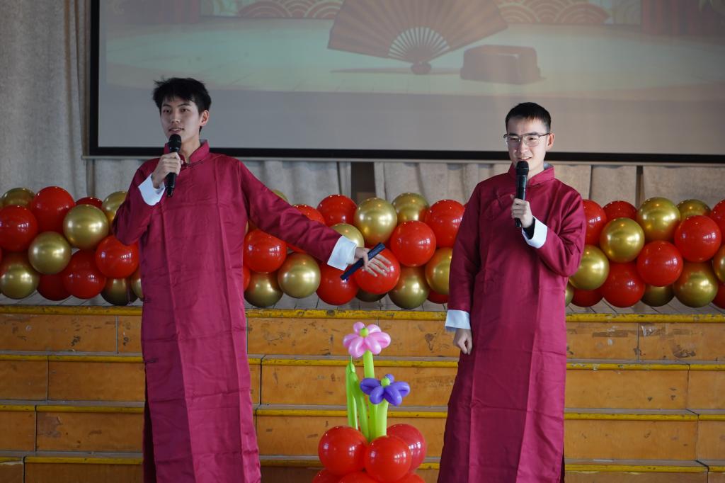 随后,精彩纷呈的师生节目轮番上演。工程实践中心的《明天会更好》唱响希望,车辆工程系改编的《导师阵线联盟》妙趣横生,基础课教学中心的朗诵《尺规经纬 机设凝智 力学铿锵 匠心筑梁》铿锵有力,机械工程系与机械设计系的《歌唱祖国》《相亲相爱一家人》抒发了家国情怀,机器人工程系的《我和我的祖国》深情动人。教工节目充分展现了严谨之外的才华与情怀。学生环节同样亮点纷呈,杨晔浩同学的独唱《暗里着迷》青春洋溢,季益涛、薛浩的相声《三国戏》令人捧腹。最后,学院党委书记吴文兵一曲激昂的《我爱你,中国》将全场气氛推向高潮,掌声经久不息。