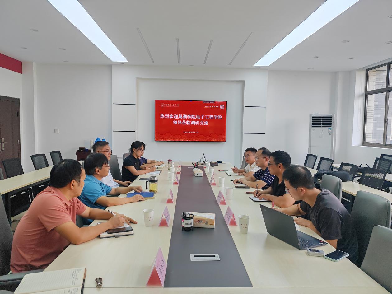 许明坤副院长对我院专业建设的系统性规划与阶段性成果给予高度评价,并介绍了巢湖学院电子工程学院在开展智能装备与系统新专业建设的探索与思考。会上,双方就本科专业定位、人才培养方案制定、教学实验室建设、学生专业综合实践与实习安排、就业规划等几个方面展开了深入探讨与互动交流,饶思贤对其中的关键问题提供了有效的经验做法。