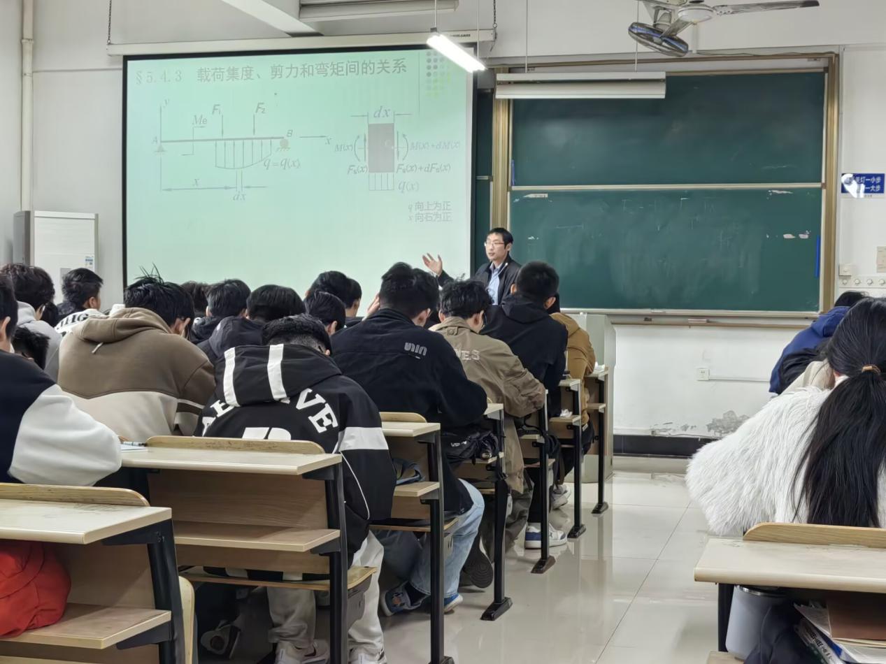 冯建有老师结合本次授课内容,以奥运会举重项目中的“杠铃”为案例,引导同学们思考弯曲内——剪力、弯矩与外载荷之间的关系。通过理论推导得出了弯曲内力与载荷集度之间的微分关系,并结合科学家们研究弯曲变形的历史过程,强调严谨治学的态度和科学探究的方法。在阐释“弯曲内力”的力学原理及工程应用的过程中,引导学生关注学科前沿与国家战略需求;结合我国大型桥梁的建设案例,展现中国科学家和工程师们的创新能力与奉献精神,激发学生的民族自豪感与责任感。