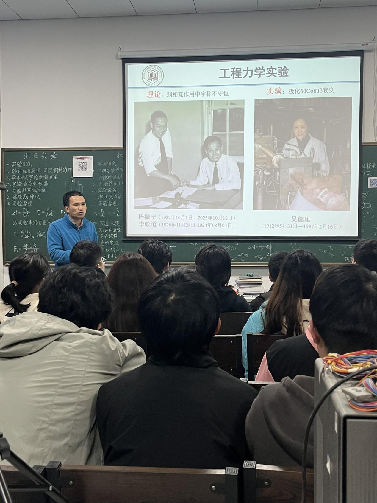 黄志来老师在讲授拉伸、压缩和纯弯曲实验时,以著名科学家杨振宁为切入点,通过实验的置信度、可度量、可操作性、可观测性、误差等讨论实验的本质,引入丰富的生活实例进行讲解,如:考试其实也是测试,一定存在误差,所以用平时成绩补偿误差,以提高置信度,平时成绩是“科学的结果”。从“秦始皇统一度量衡”的意义,引出力学测试的标准,从我校的国际标准分委会角度讲解国标制定等。以培养“获取数据、理解任务、应用知识”基础能力为本,培养学生“分析问题、综合和评价方案等”的高维思考。如:从铸铁压缩沿45度斜面破坏的感性认识,至强度理论的理性思考,再引导学生观察斜面偏转,以及目前的研究进展等。黄老师润物无声般将课程思政元素融入教学中,充分发挥课程育人功能。