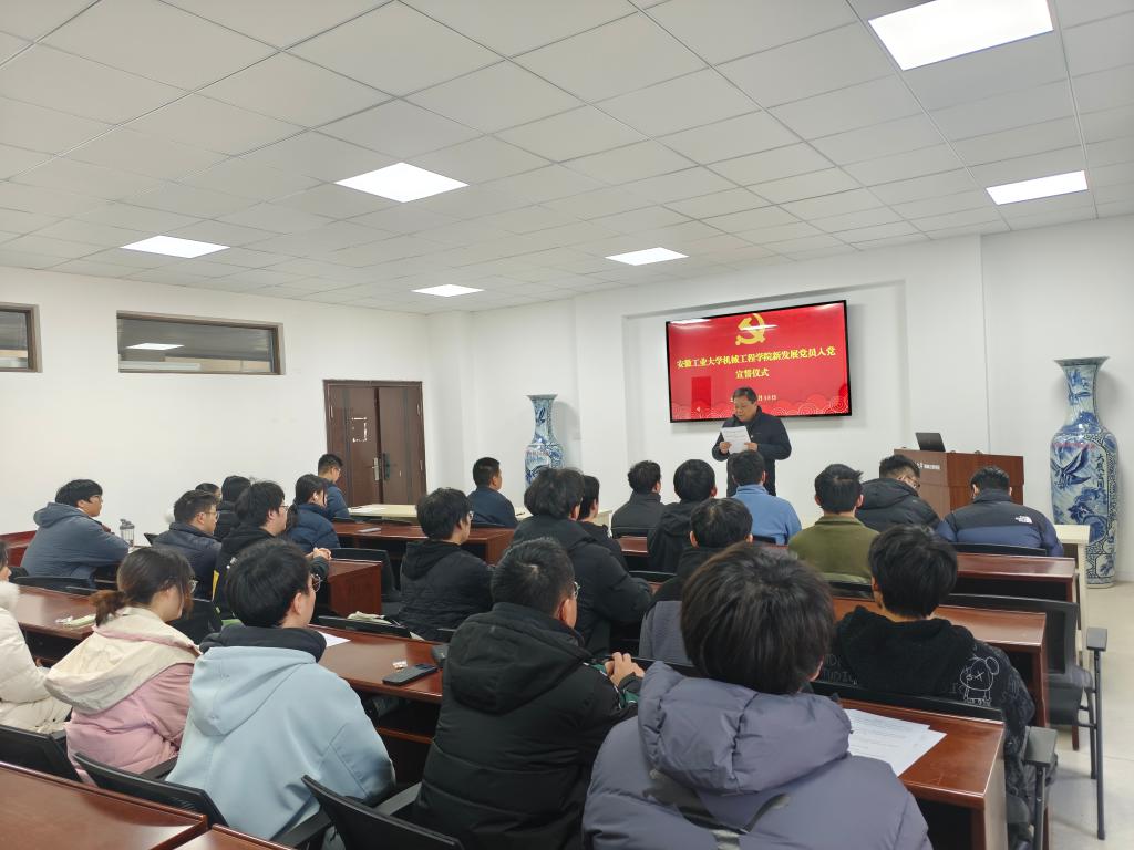 为进一步强化新发展党员的党性意识与责任担当,传承红色基因,凝聚奋进力量,12月15日下午,suncitygroup太阳集团在机械楼 404 会议室举行新入党党员集体宣誓仪式。学院党委书记吴文兵、副书记陈庆林、新入党党员及老党员代表参加,仪式由党委秘书周环主持。